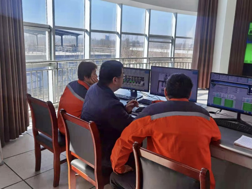 隨后,排水處領(lǐng)導(dǎo)在太原康晉水務(wù)公司領(lǐng)導(dǎo)陪同下,詳細(xì)察看了廠區(qū)自控系統(tǒng)的相關(guān)運(yùn)行數(shù)據(jù)和公司近期的生產(chǎn)運(yùn)行情況,同時對一期一步和二步的出水水樣進(jìn)行了現(xiàn)場采集。